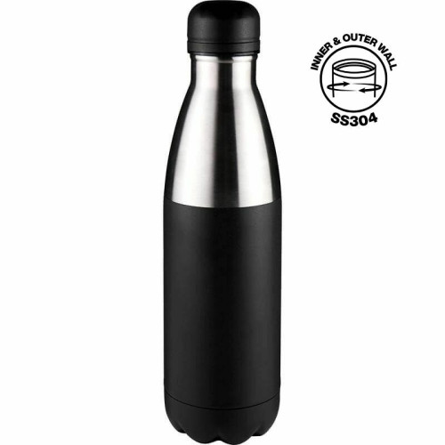Classic double walled vacuum insulated water bottle with corrosion-resistant 304 Grade Stainless Steel for both inside and outside walls. Unique half-coating provides an elegant look and powder coated for stone-touch feel. Leakproof. Maintains drinks hot for 6 hours, and cold up to 12 hours. Content: 500ml