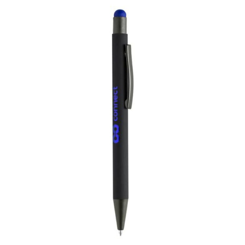 Ballpoint pen with twist mechanism, body in solid black color and stylus in a wide range of colors. Contrast Gun metal trims. Especially designed for laser engraving, including a special coating for your logo to be properly engraved in matching color with the stylus. With 1200 m writing length and German Dokumental® Ink.