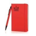 Ruled A6 hardcover classic notebook set including aluminium stylus pen. With elastic closure and bookmark ribbon. 144 pages of 70g/m2 inside. Cream coloured pages. Packed in Gift box.