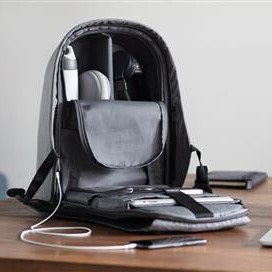 The Bobby Hero line is our new generation of anti-theft backpacks. This new model will help you to move safely, carefree and organised. Key features such as cut-proof protection, hidden zipper closures & pockets will keep your belongings safe during your commutes. Bobby is also the most convenient backpack with features such as an integrated USB charging port, water-repellent fabric, illuminating safety strips and a luggage strap. On the inside there are padded compartments for a 15.6” laptop, tablet up to 12.9” and all your other belongings. Made from recycled PET materials and AWARE™ tracer. With AWARE™, the use of genuine recycled fabric materials and water reduction impact claims are guaranteed, by using the AWARE disruptive physical tracer and blockchain technology. Each Bobby Hero regular saves 16 litres of water and reuses 27 plastic bottles. Registered design®